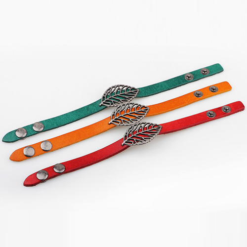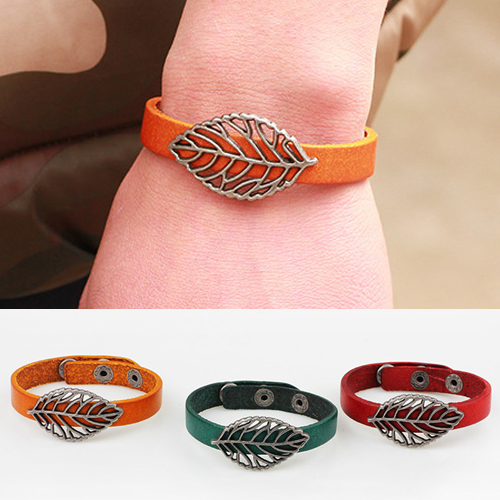 This retro style PU leather bracelet will add some stylish vibe for your ensemble. Decorated with a hollow out alloy leaf makes