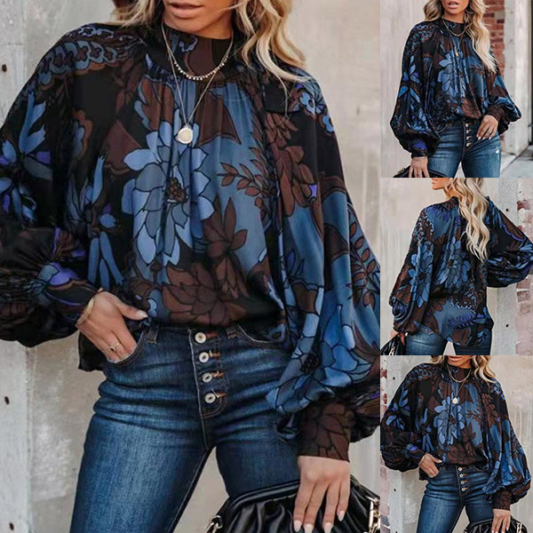 You can achieve for a retro yet stylish daily style by wearing this wonderful top. Its chic printed details and lantern sleeve design make this piece look so eye-catching and distinctive. Finished with mock neck,a loose silhouette and soft,breathable fabric,this top can offer you a sassy look by teaming with your favourite pants.