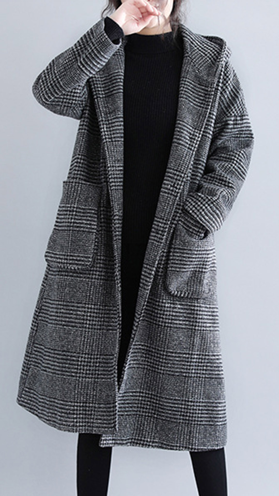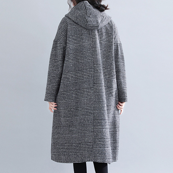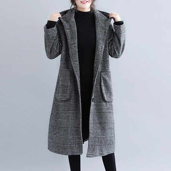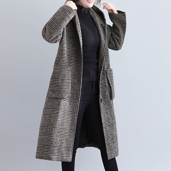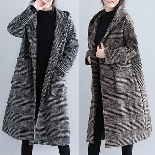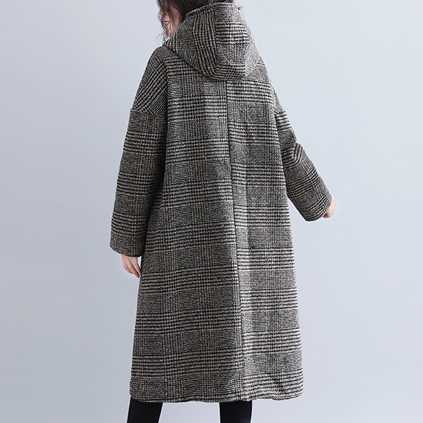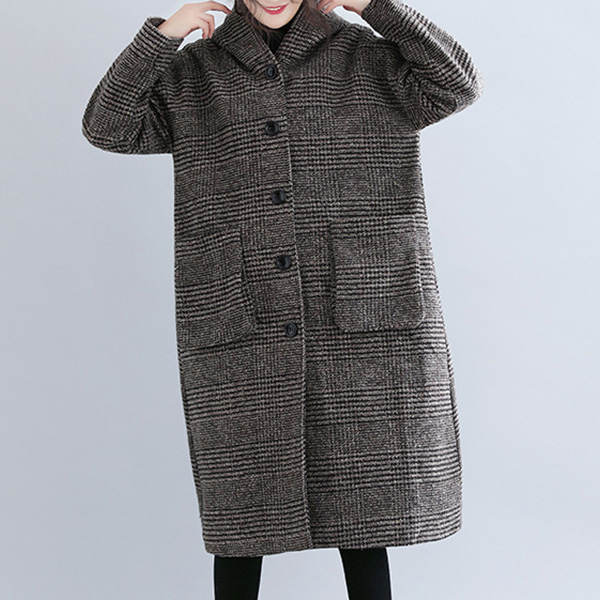 In these cold days,a woolen coat would make your wardrobe more complete. So what are you waiting for if you still not have one piece? It is designed with plaid element,retro yet stylish. Finished with long sleeve,hooded silhouette and big hand pockets design,this woolen coat can keep you warm as well as maintain your style.