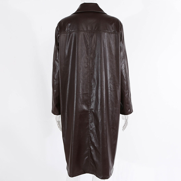 Retro Style Long Sleeve Notched Lapel Double-breasted PU Leather Windbreaker Coat