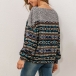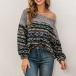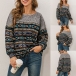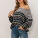 Retro Style Long Sleeve Oblique Shoulder Printed Top