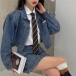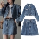 Retro Style Long Sleeve POLO Collar Denim Coat + Skirt Two-piece Set