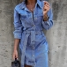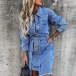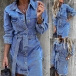 Retro Style Long Sleeve POLO Collar Denim Dress