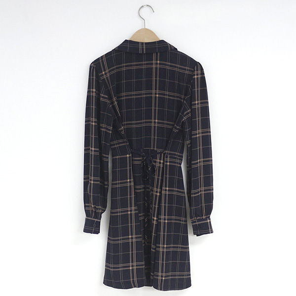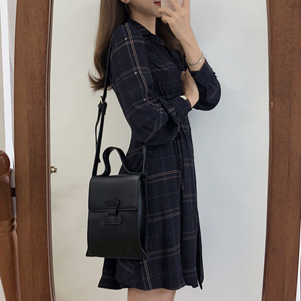 Retro Style Long Sleeve POLO Collar Plaid Shirt Dress