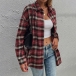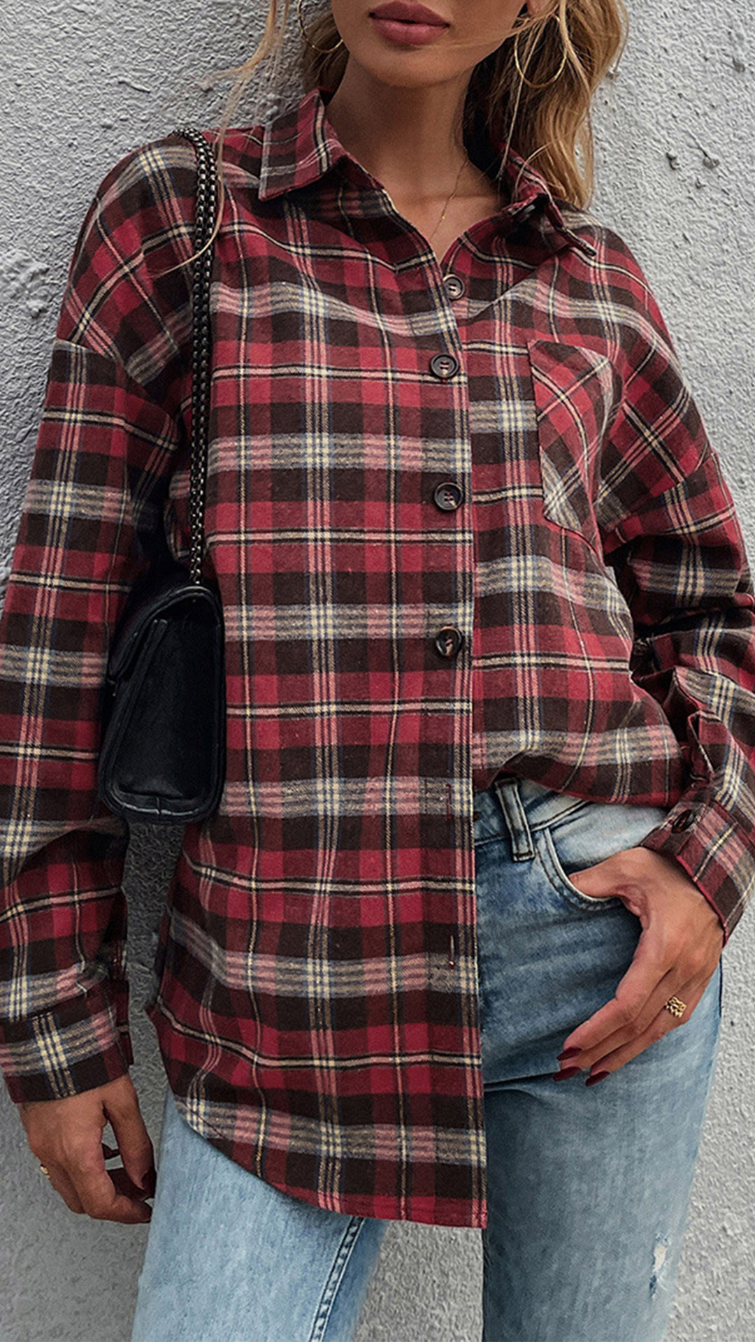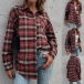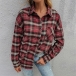 Retro Style Long Sleeve POLO Collar Single-breasted Plaid Shirt