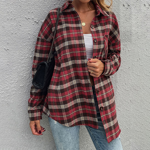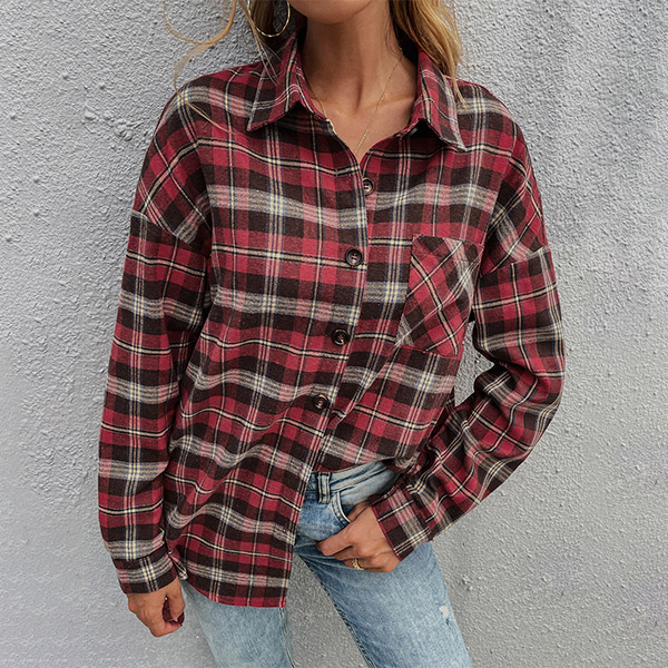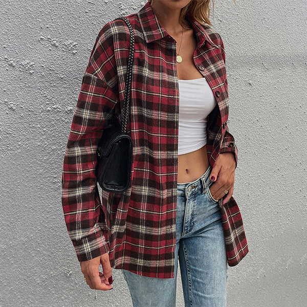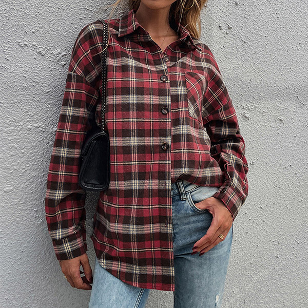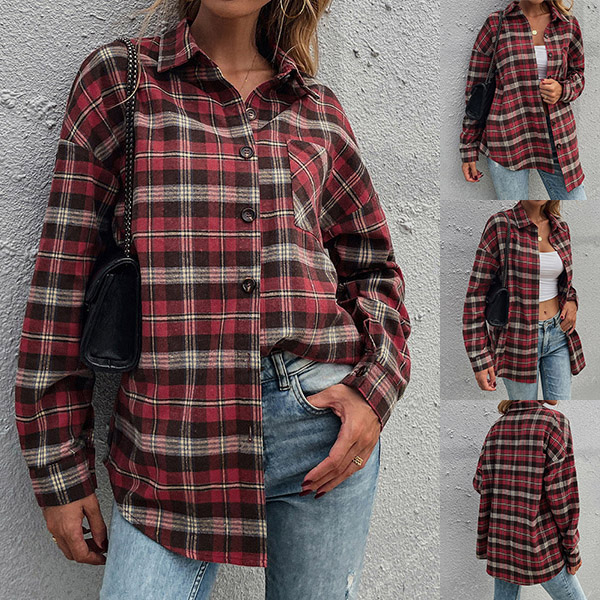 The plaid shirt is a fashion trend. So why not catch up with this trend with this plaid shirt? Its soft,breathable fabric and loose silhouette design can give you a comfortable day. Finished with long sleeve,POLO collar and single-breasted design,this piece can give you some retro yet stylish vibes. In the spring and autumn days,you can also make it as a cardigan.