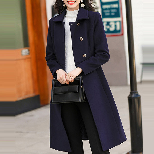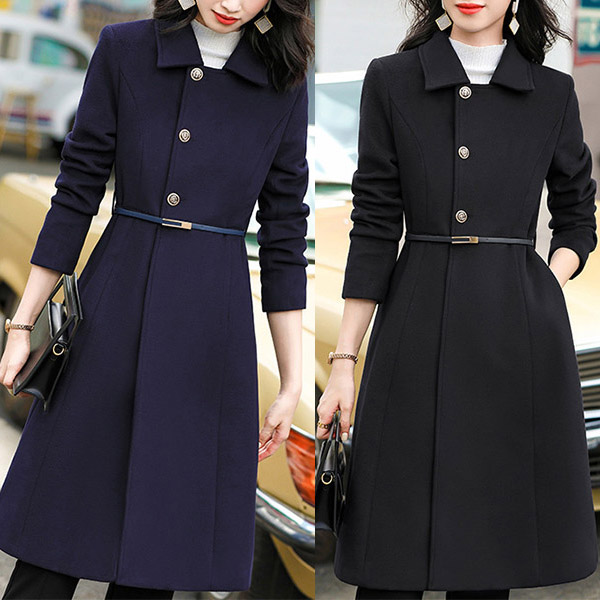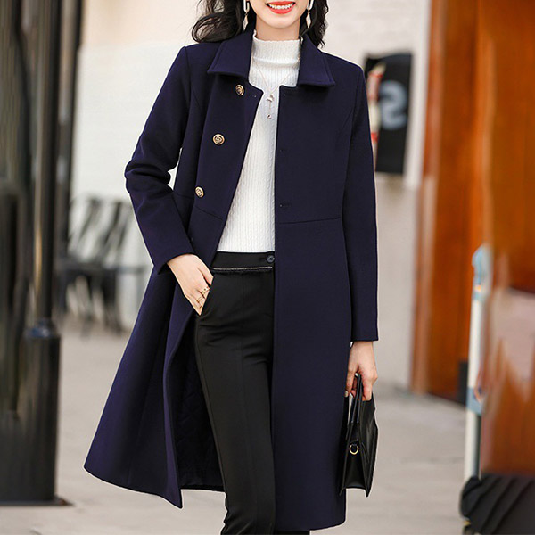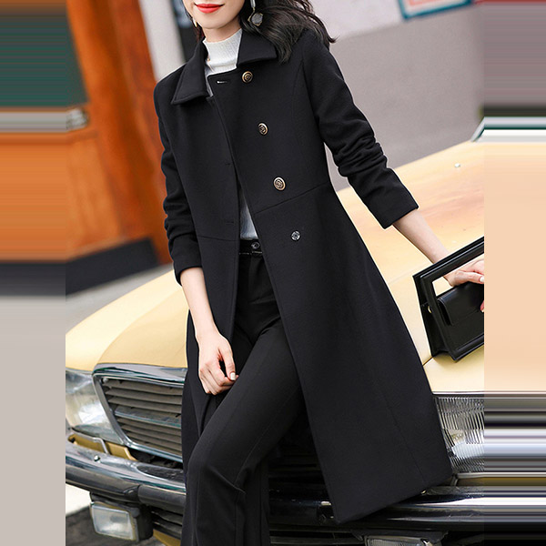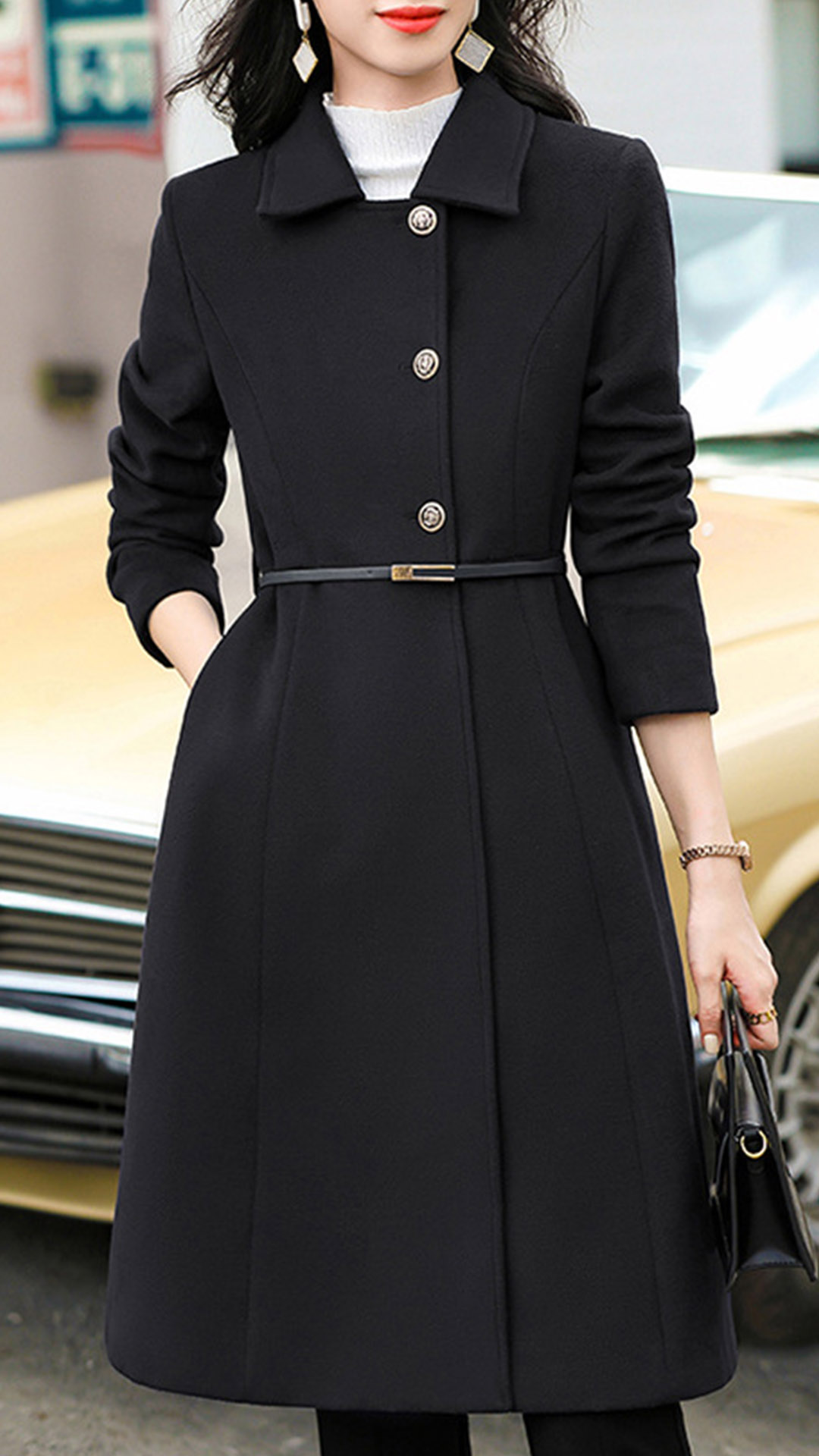 Manteau rétro style duffle-coat slim à simple boutonnage avec col polo et manches longues