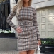 Retro Style Long Sleeve Round Neck High Waist Slim Fit Plaid Dress