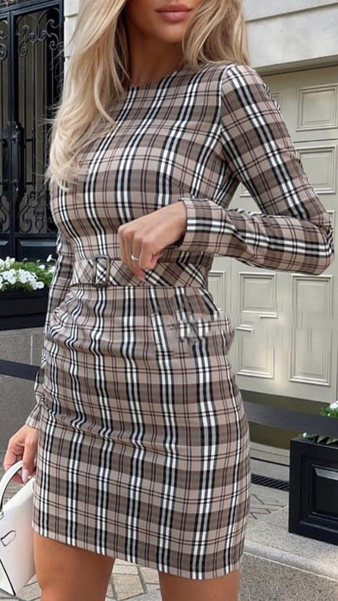 Make your wardrobe more complete by adding a plaid dress such as this creation. It is finished with long sleeve,round neck,high waist and fit silhouette,this dress not only can showcase your slender figure,but also can exude your style and charm. This dress can be fit for different occasions.