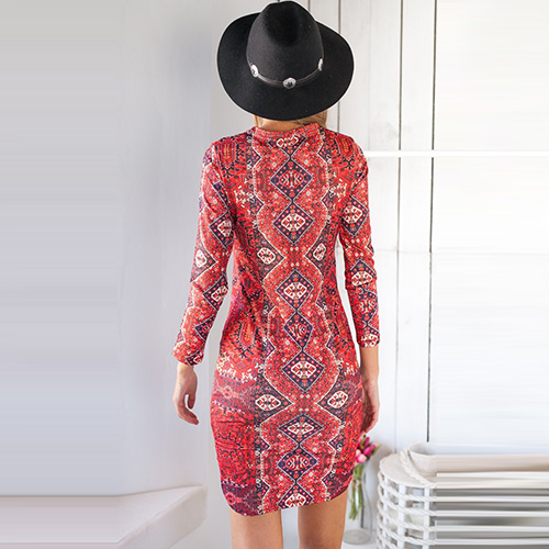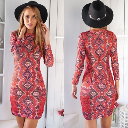 This Cheongsam dress features retro style floral print,with long sleeve,round neck and a fit