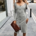 Retro Style Long Sleeve Square Collar Single-breasted Dress