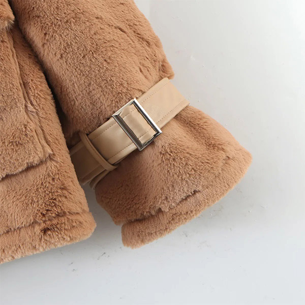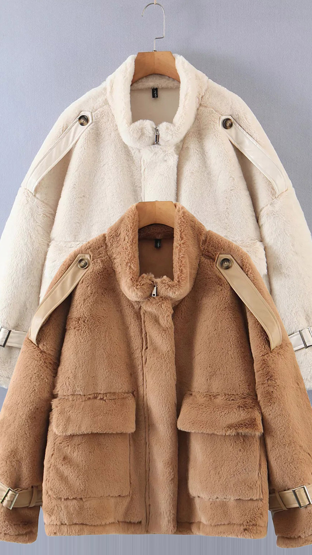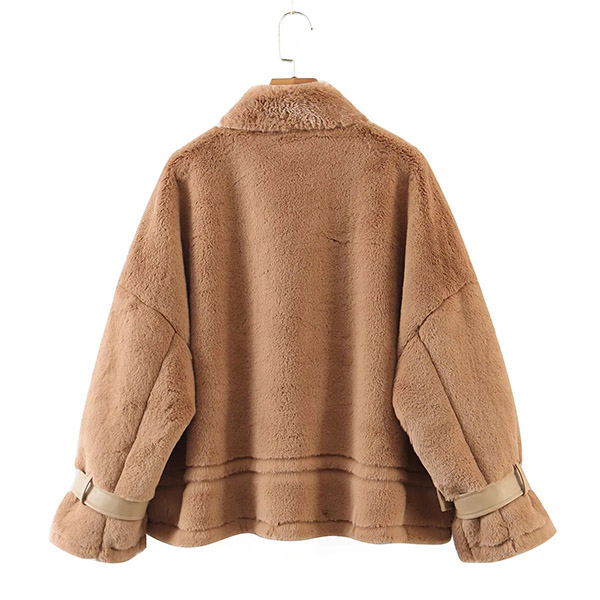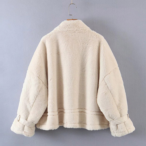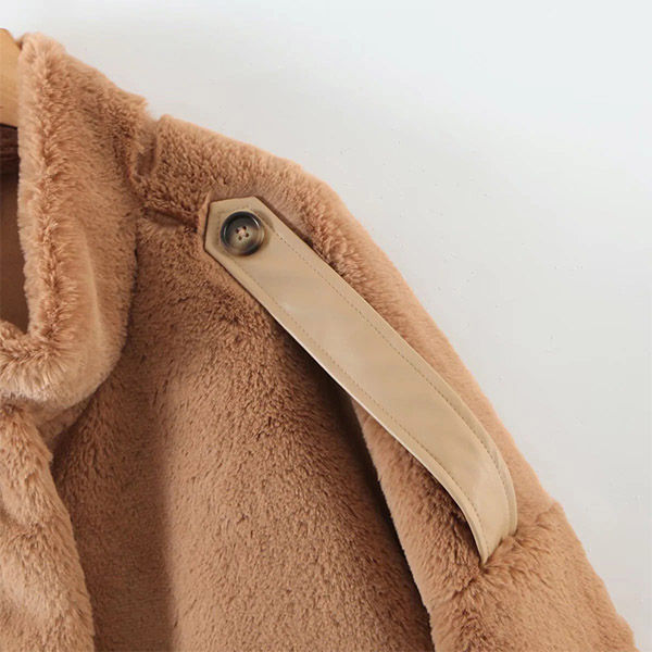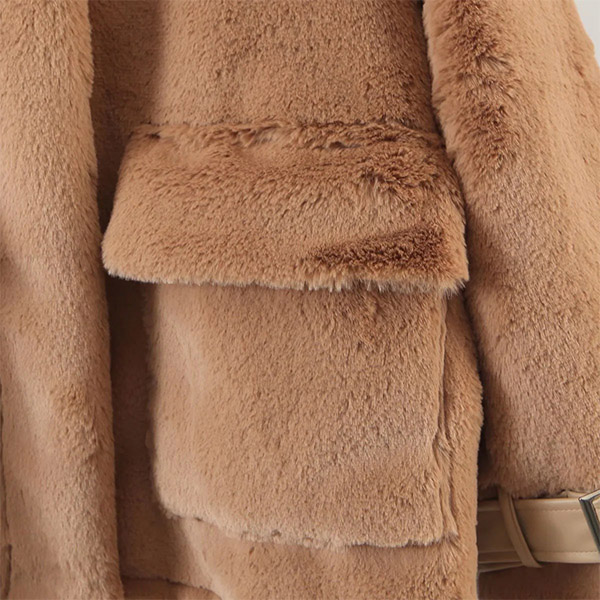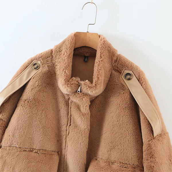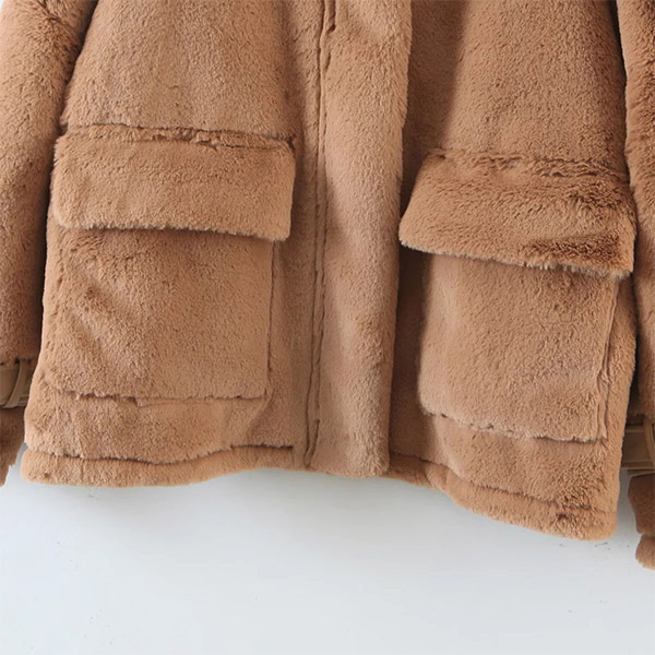 Retro Style Long Sleeve Stand Collar Front-pocket Plush Coat