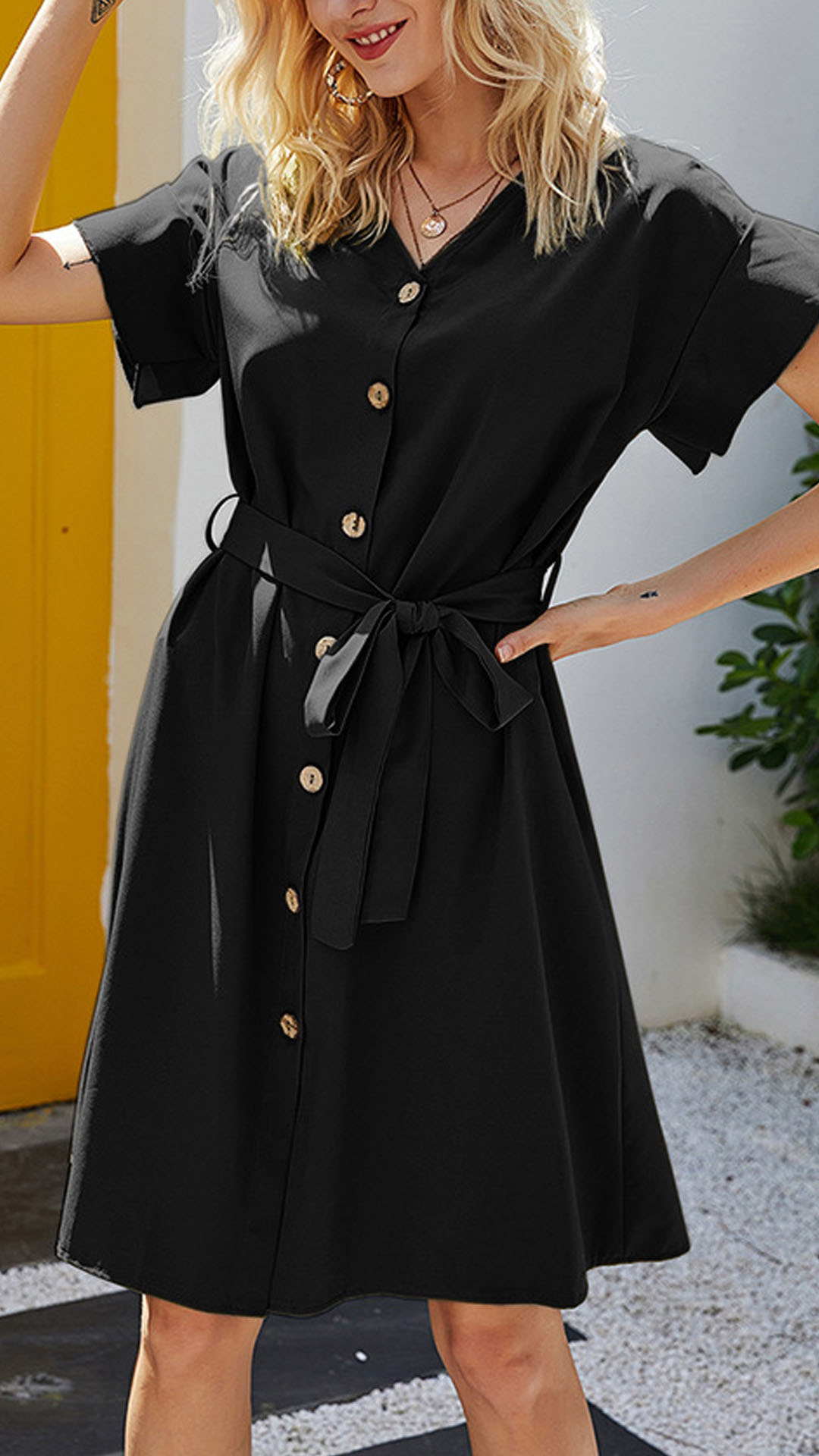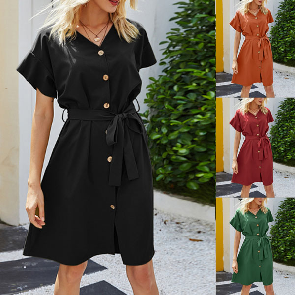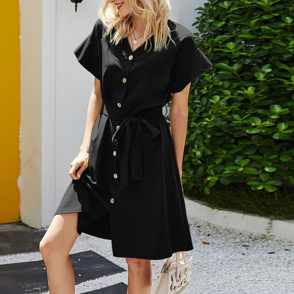No matter for your busy workdays and casual weekends,this delicate yet stylish dress can be your perfect partner. Comes with a solid color,the v-neck,single-breasted and lotus sleeve design can lend you a dash of sweet yet feminine appeal,while the lace-up design at the waist part can better showcase your figure. Just add this dress to your wardrobe and it won't let you disappointed!