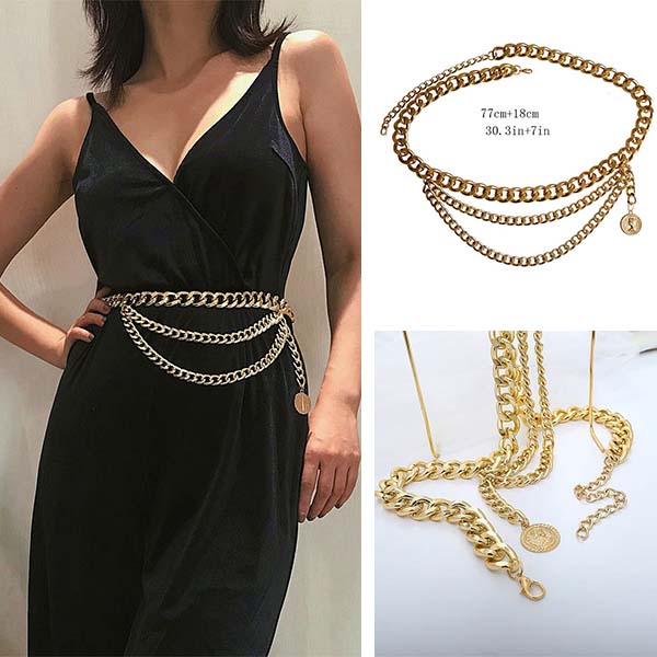 Your entire look can be more charming when you add this waist chain. It comes with a classic yet stylish gold tone,multi-layer style design makes it look so chic and attractive. Perfect fit for matching with your dresses.