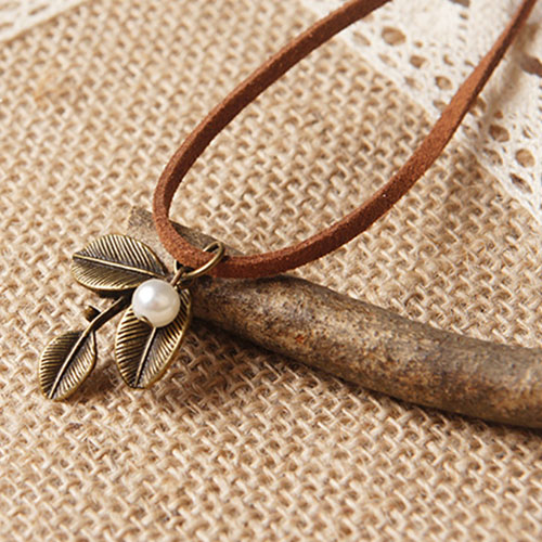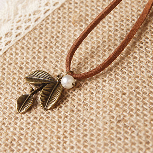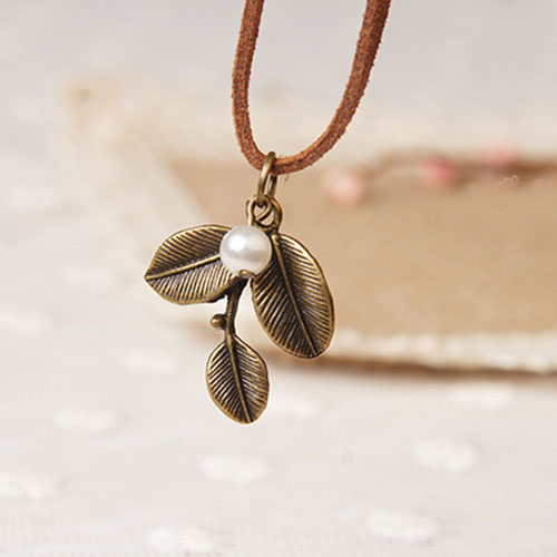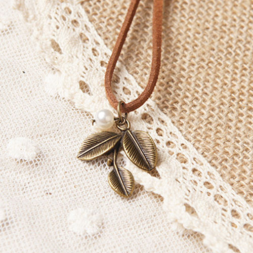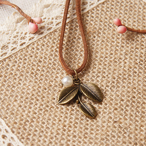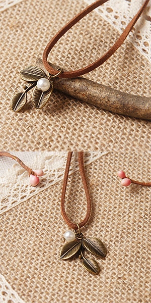 This necklace features leaves pendant,decorated with a pearl,retro and chic.