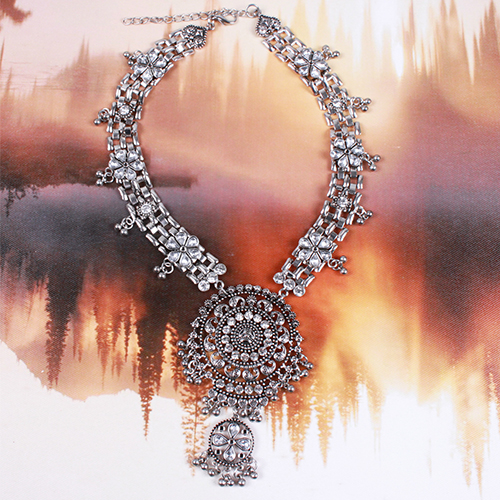 Retro Style Rhinestone Hollow Out Pendant Necklace