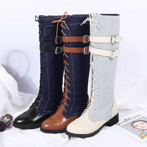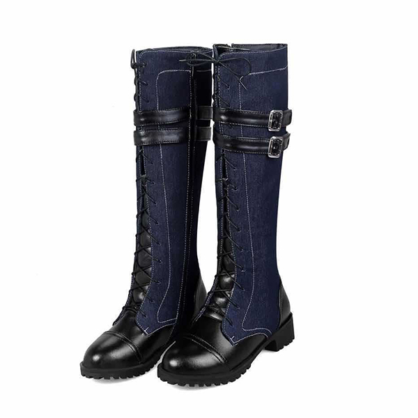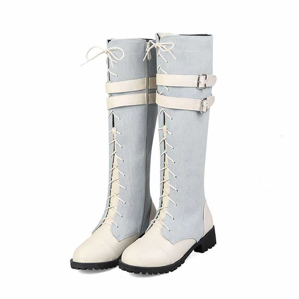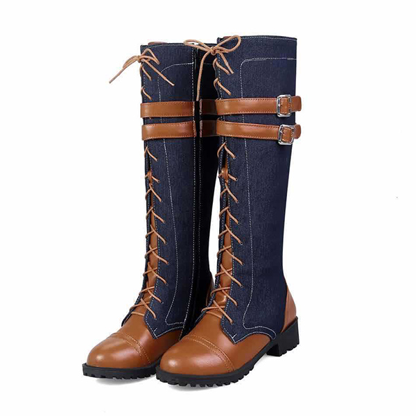 Retro Style Round Toe Flat Heel Lace-up Knight Boots