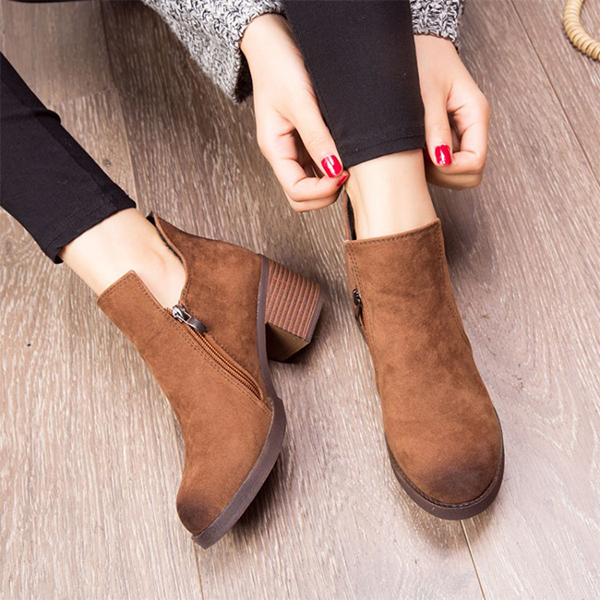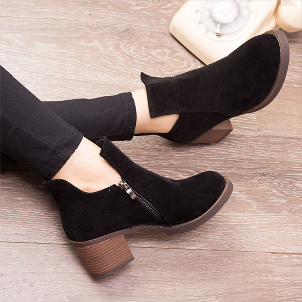Leading the fashion trend with the help of this pair of ankle boots. It is equipped with round toe,thick heel,anti-slip sole