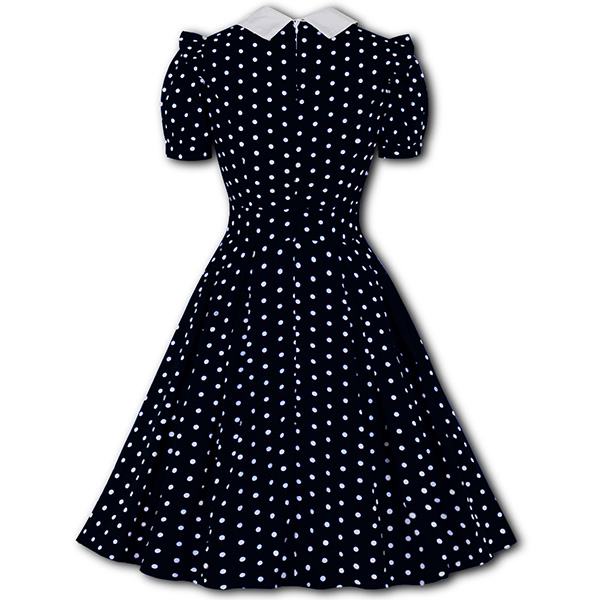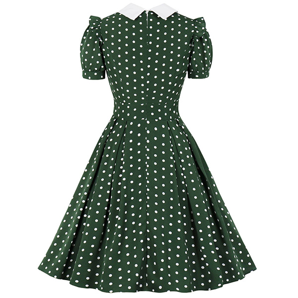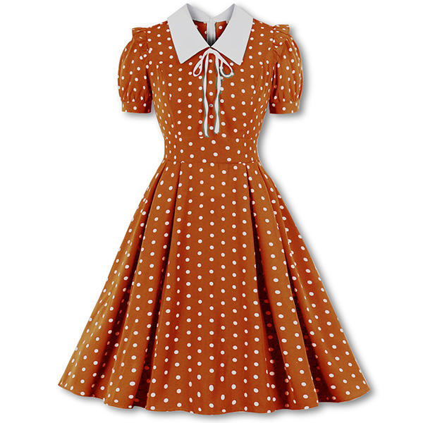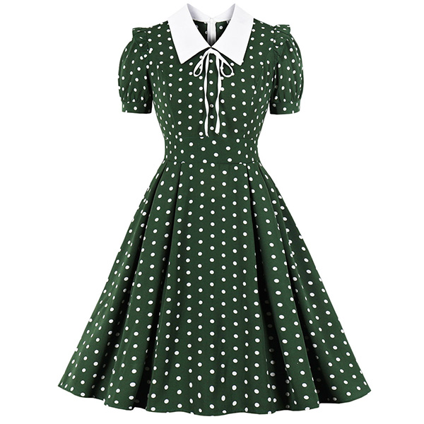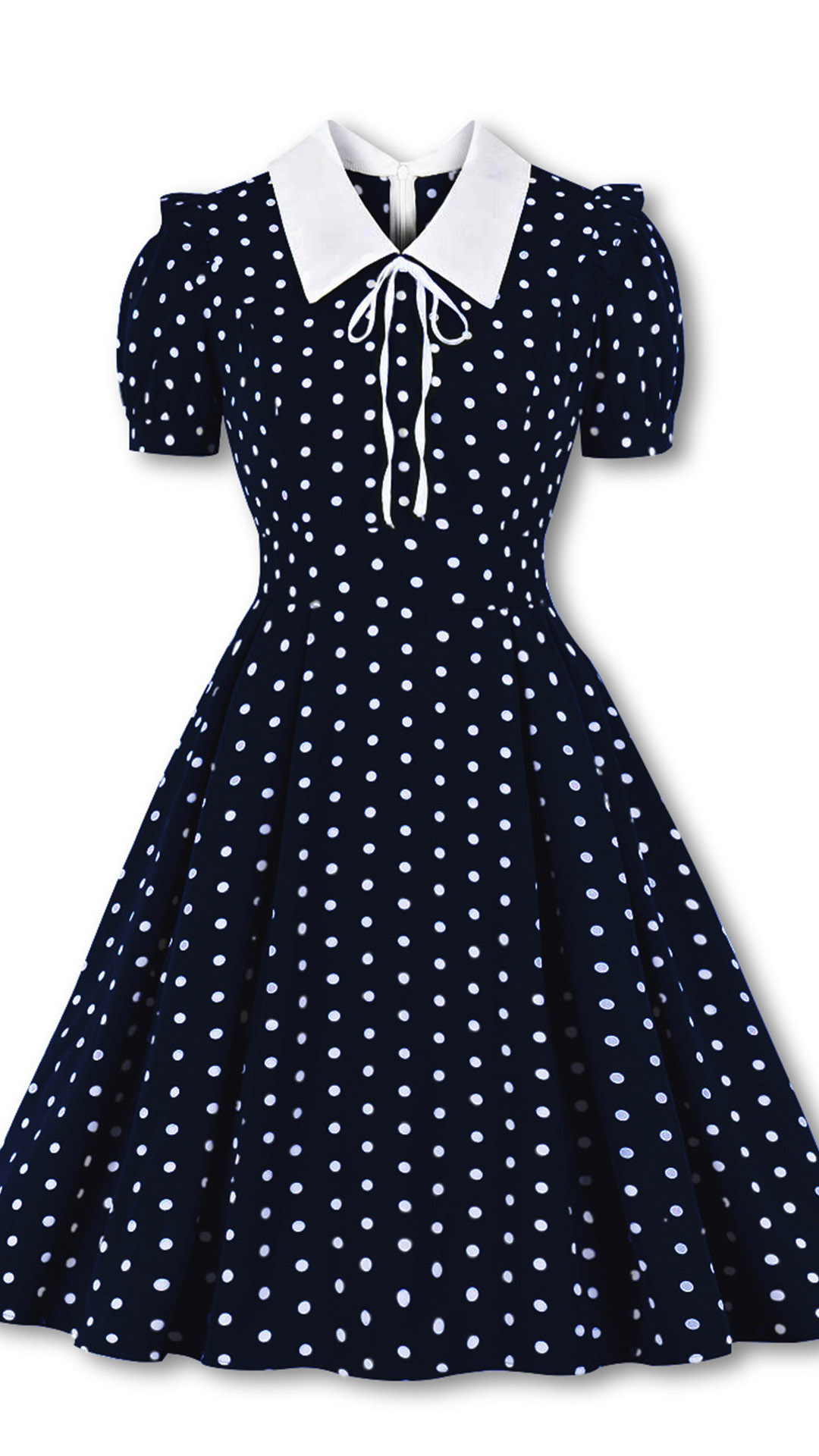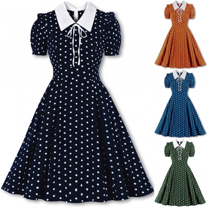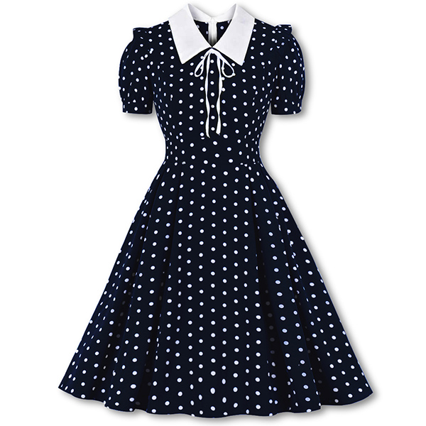 Hey,girls,you can inject a dash of retro yet stylish vibes to your wardrobe with the help of this dress. It is outfitted with short sleeve,POLO collar and high waist design,this dress can showcase your slender figure. Moreover,the dots printed details will make this piece look more eye-catching. This is a dress which can be fit for different occasions. So why not take interest in it?