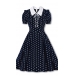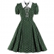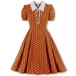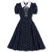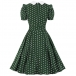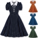 Retro Style Short Sleeve POLO Collar High Waist Dots Printed Dress