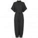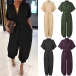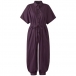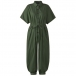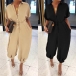 Retro Style Short Sleeve POLO Collar High Waist Solid Color Loose Jumpsuit