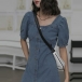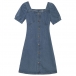 Retro Style Short Sleeve Square Collar Front-button Slim Fit Denim Dress