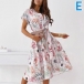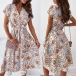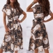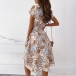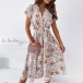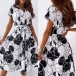 Retro Style Short Sleeve V-neck High Waist Lace-up Printed Dress