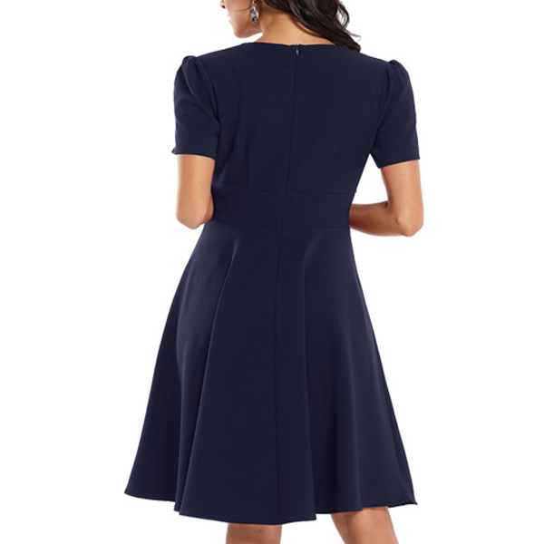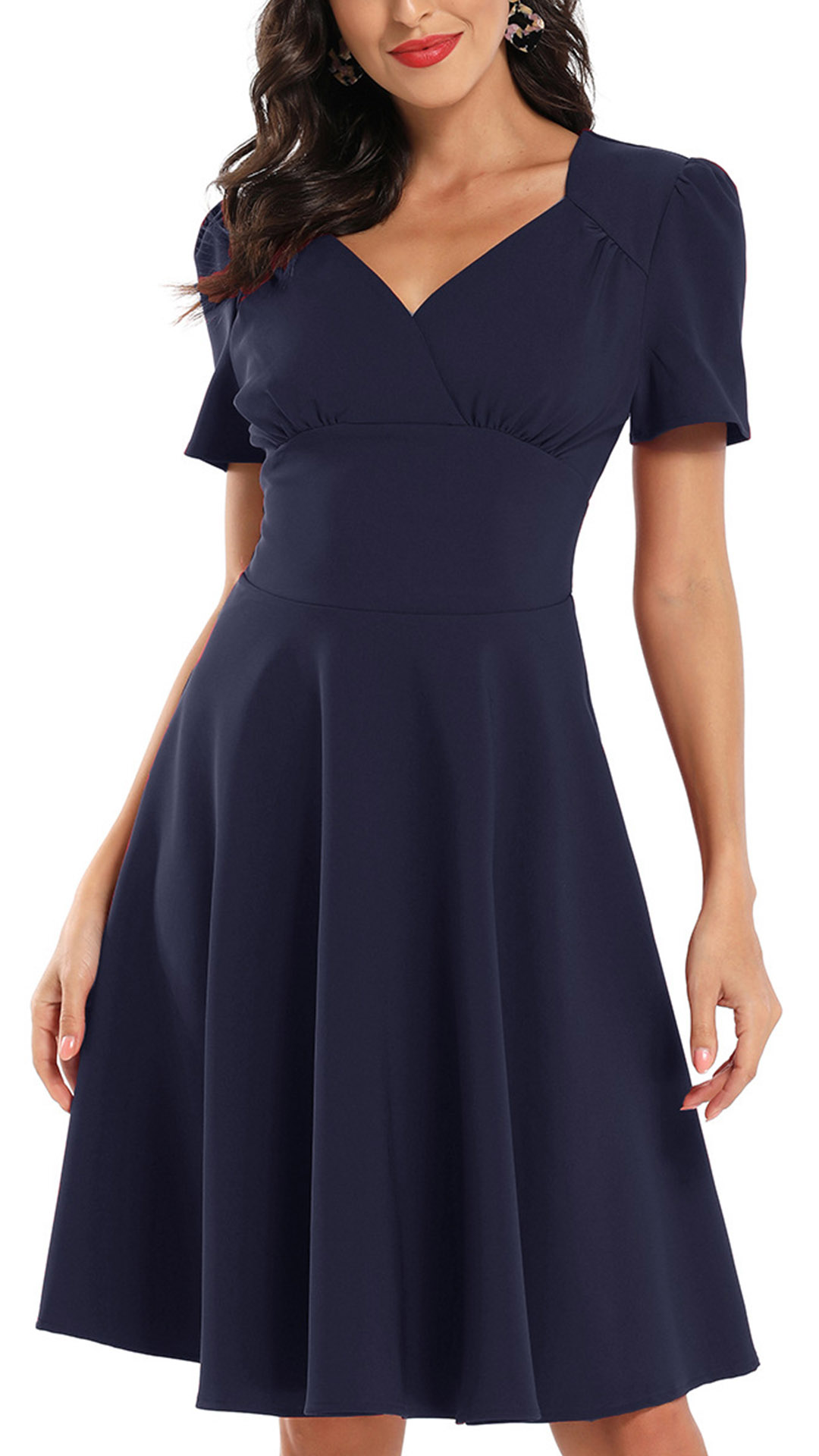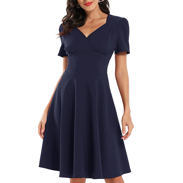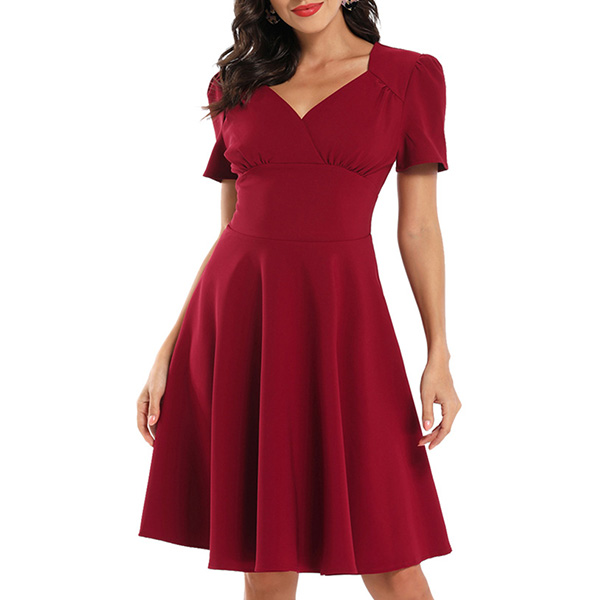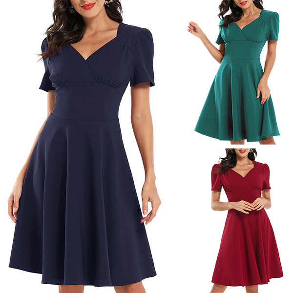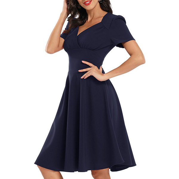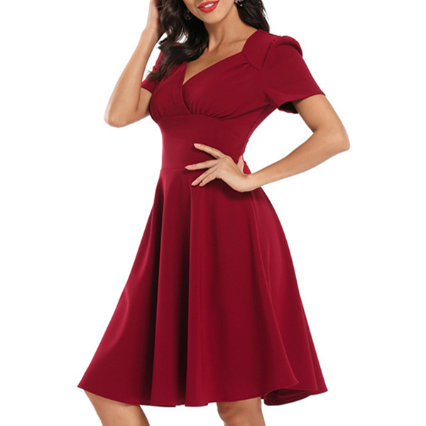 Wanna a dress which can be fit for different occasions? Then look no further than this piece. Solid color style,the high waist and A-line silhouette design can better showcase your slender figure,while the v-neck design will exude your feminine side. You can just trust in this dress to express your beauty and charm.