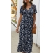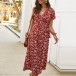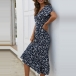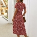 Retro Style Short Sleeve V-neck Lace-up High Waist Printed Calf-legth Dress