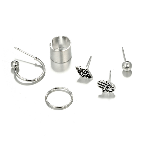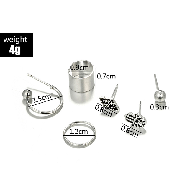 Retro Style Silver-tone Alloy Stud Earring Set 6 pcs/Set