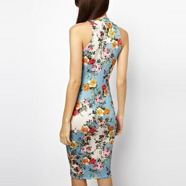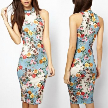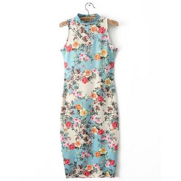 It is a good chance to add a dash of retro and colorful vibes to your wardrobe with this delicate dress. Its vibrant floral print details make this piece look so eye-catching and beautiful. Finished with sleeveless,mock neck and a fit silhouette,this dress also can showcase your slender figure. Dress it up with your sexy heels and elegant clutch,you can look stunning enough!