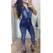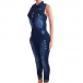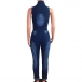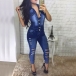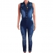 Retro Style Sleeveless POLO Collar Single-breasted Slim Fit Ripped Denim Jumpsuit