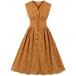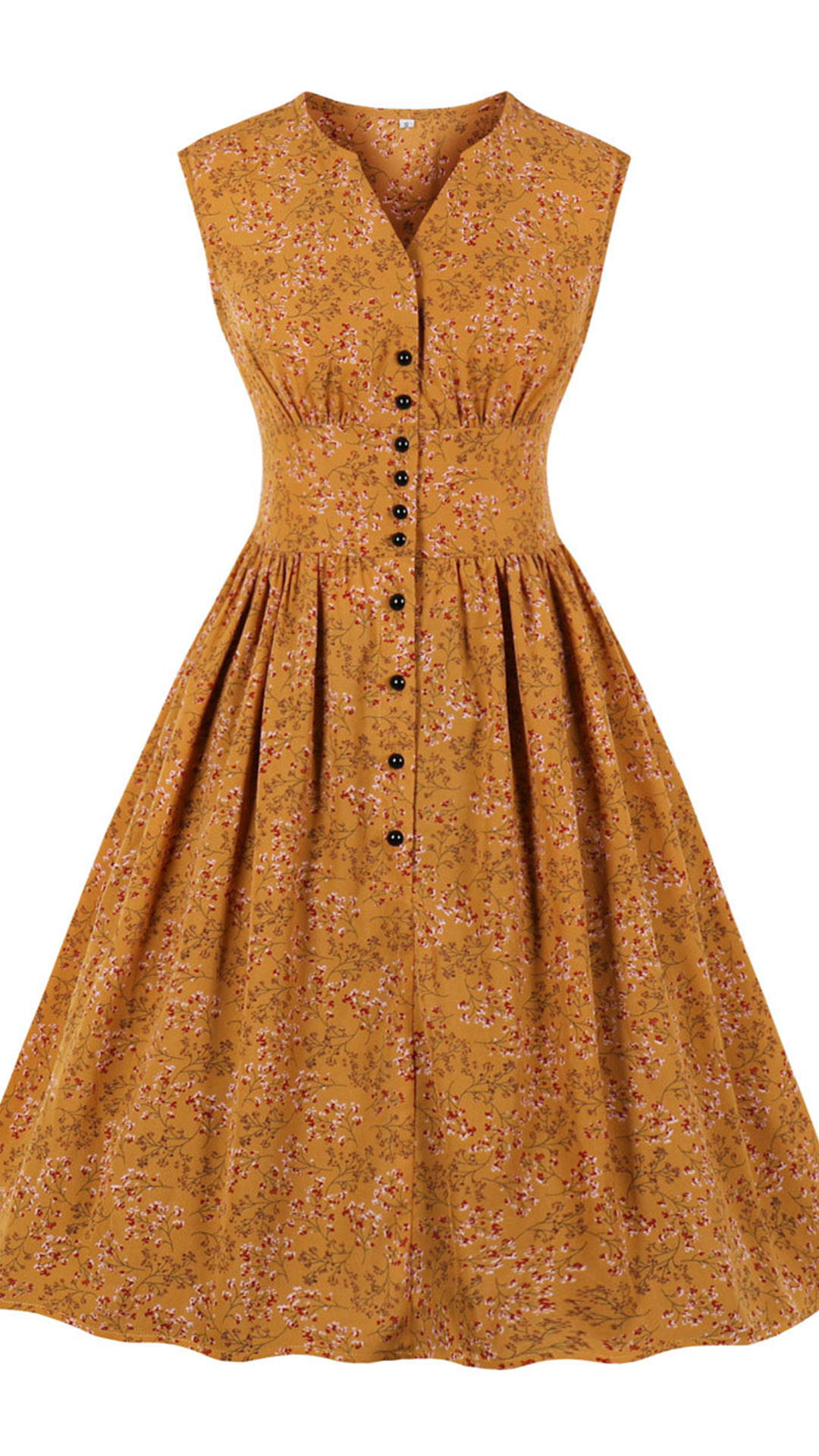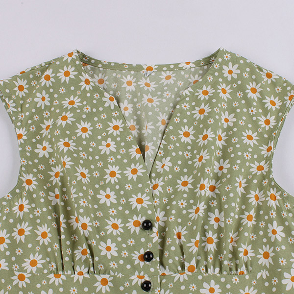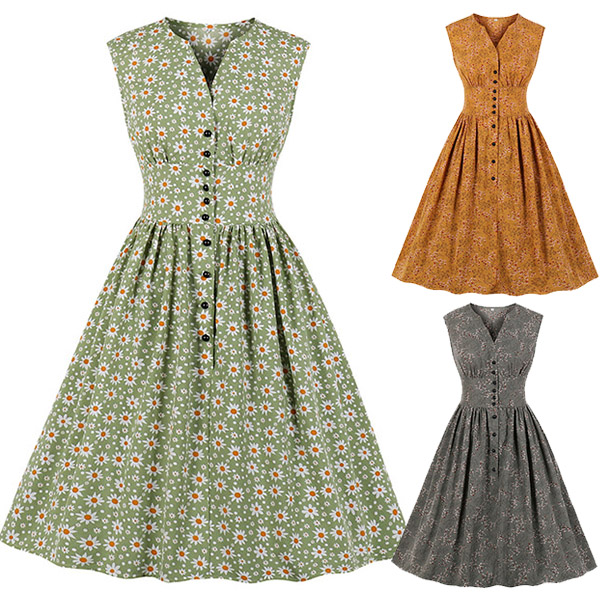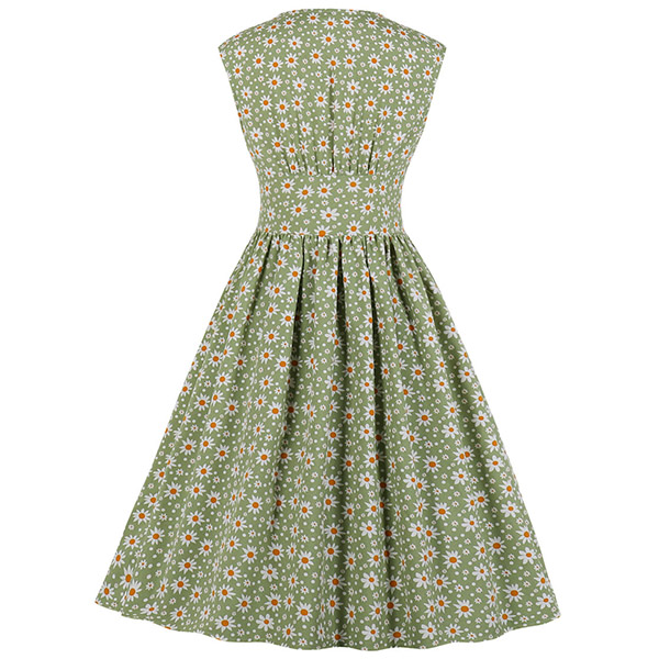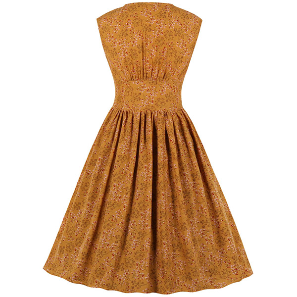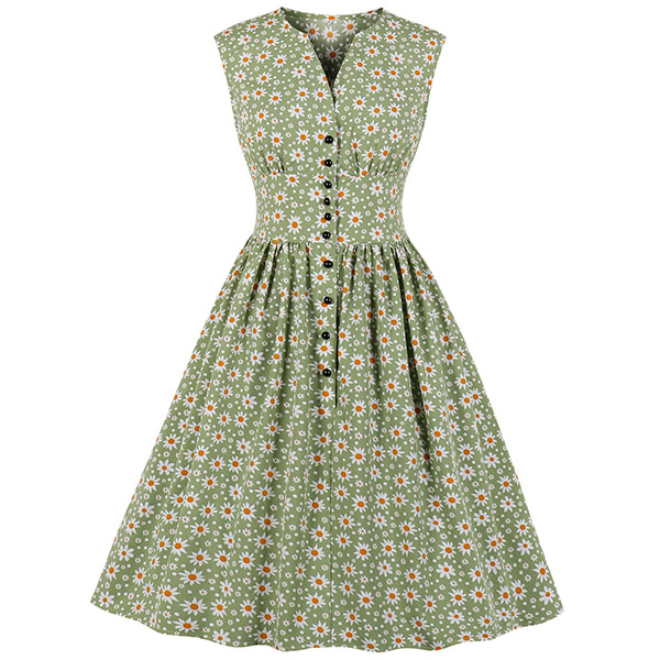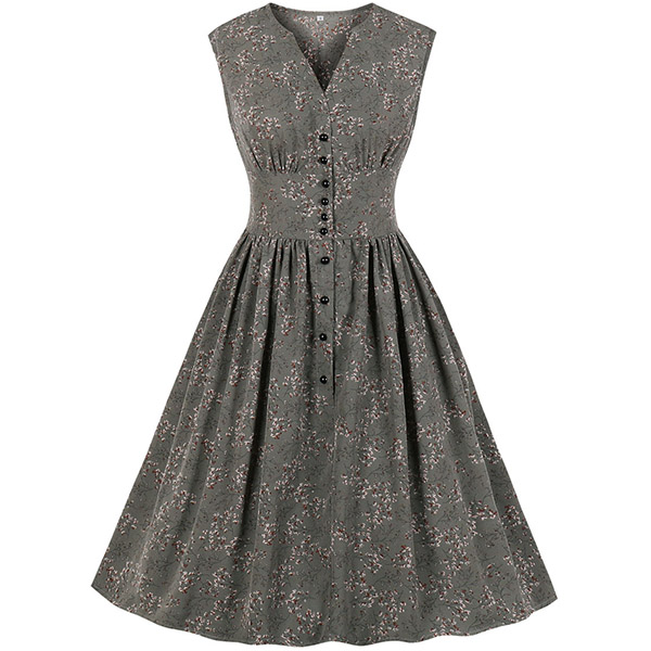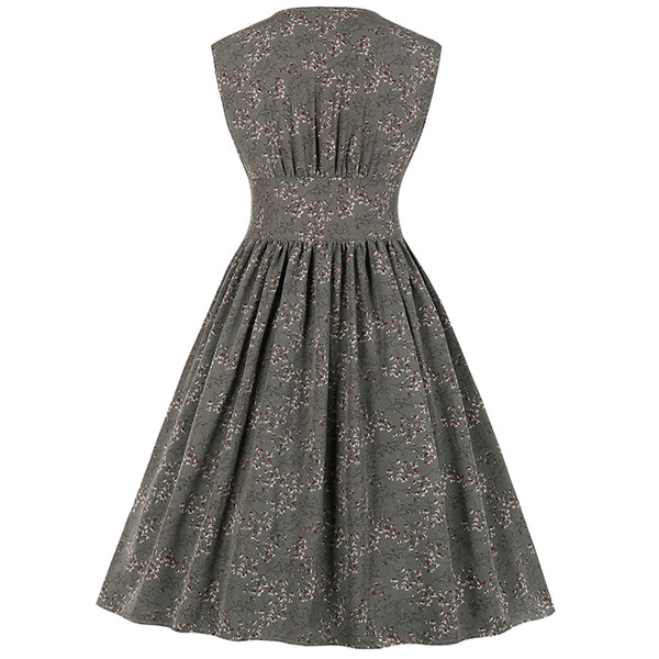 Like some retro style pieces? Then make your eyes focused on this dress. Its printed details lend you some retro yet stylish vibes. Finished with sleeveless,v-neck and high waist design,this piece also can showcase your slender figure while it maintains your style and personality.