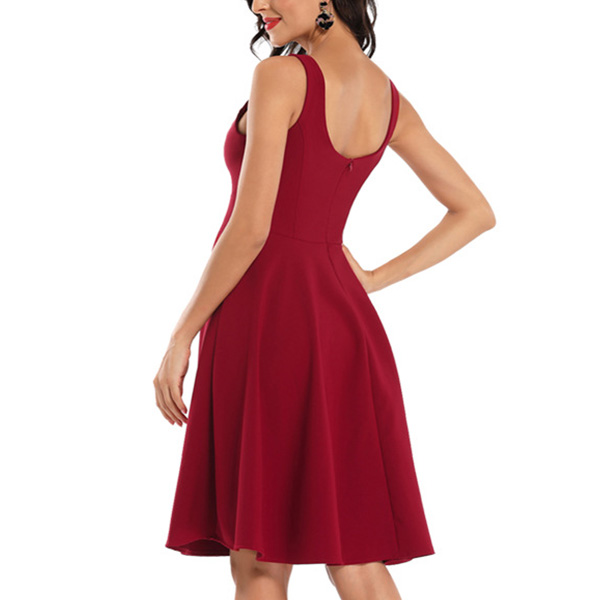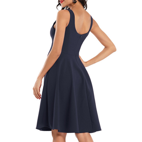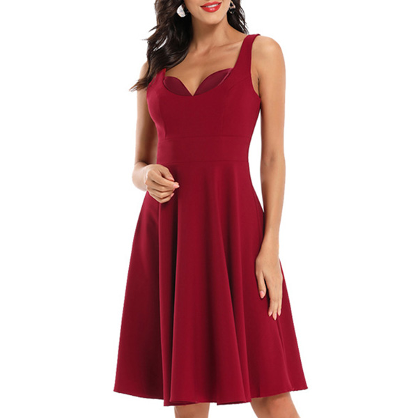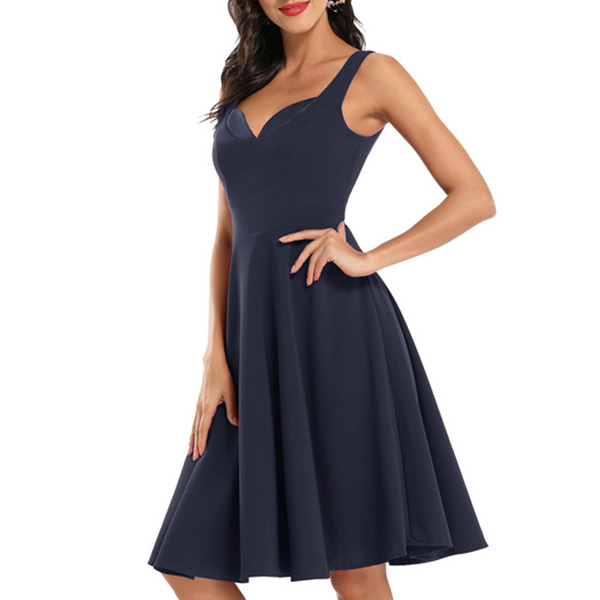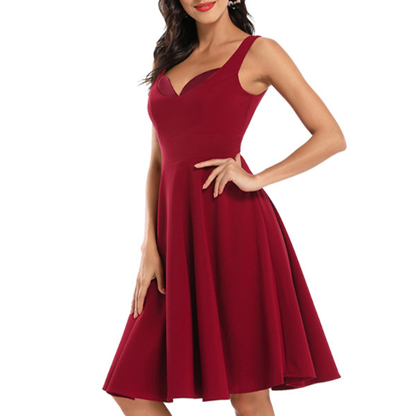 Retro Style Solid Color High Waist V-neck Sling Dress