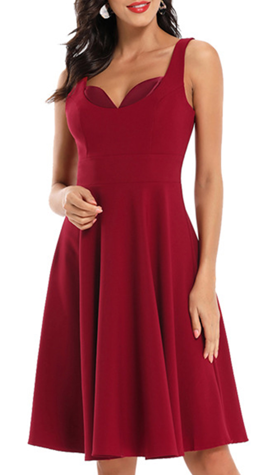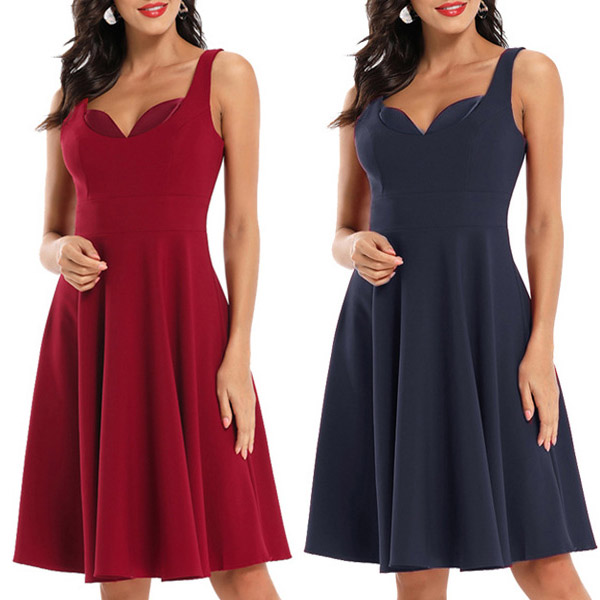 Combines of retro and flirty vibes,this dress is worth for your attention. Solid color tone design makes it look so elegant yet generous. Sling style and unique v-neck design make this piece look so distinctive and attractive. This dress is perfect fit for your night dating and weekend gatherings.