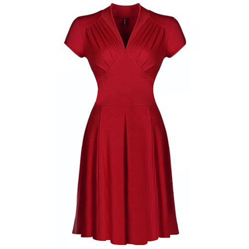 elegant and generous. Completed with short sleeves,v-neck,high waist and a sleek silhouette