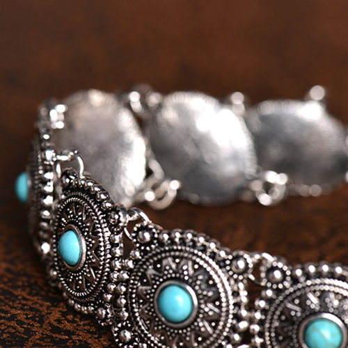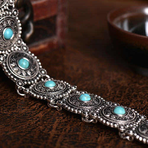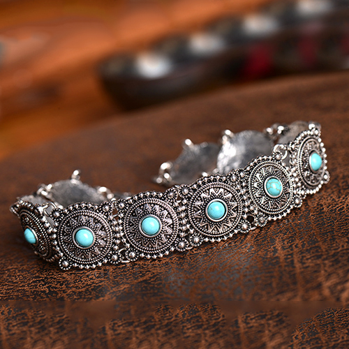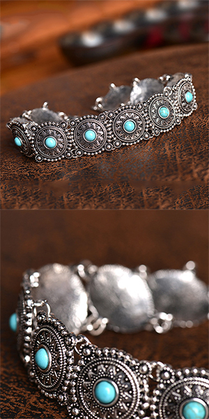 Fashion vintage style, with turquoise beads inserted, unique carving design, chic and