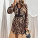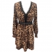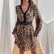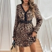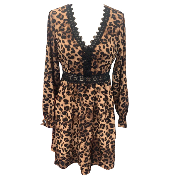 Retro V-Neck Leopard Print Dress with Lace Patchwork