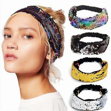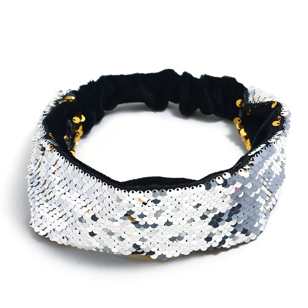 Reversible Colorful Sequin Headband with Flip Sequin Fish Scale Design