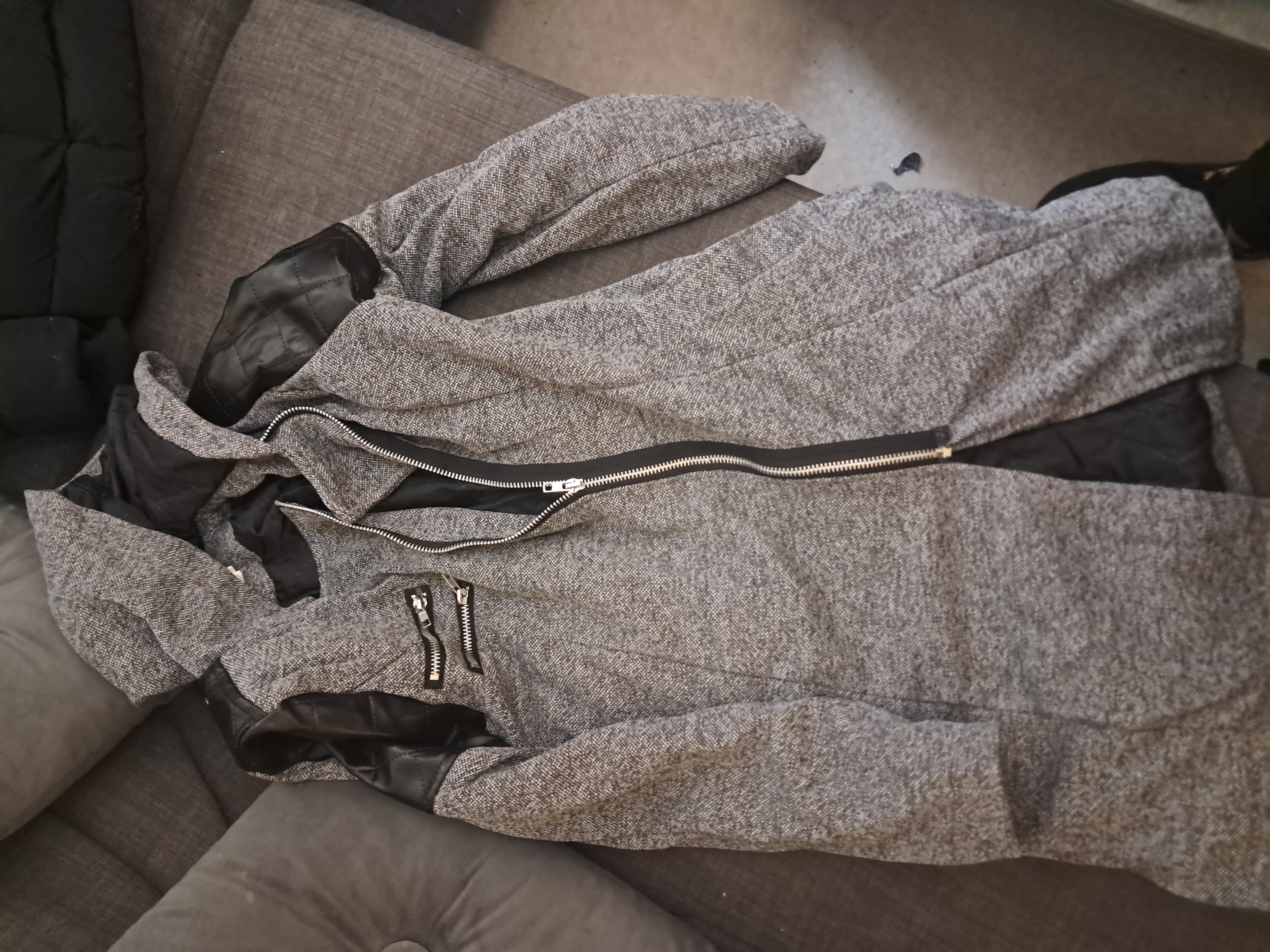 I'm usually size S but I ordered a M and it fits in the shoulders. It's a little bulky around the waist but it's thick and comfy and I love the pockets and style