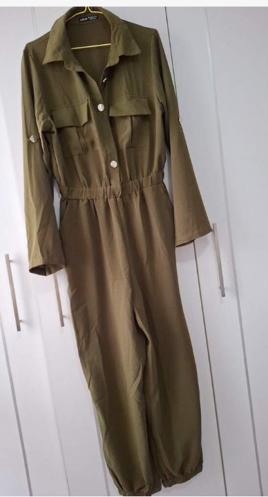 Ich liebe den grünen Jumpsuit—er ist perfekt für den Frühling!