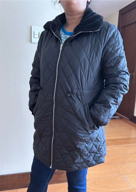 Joli manteau matelassé léger noir. Il fait bien et chic.