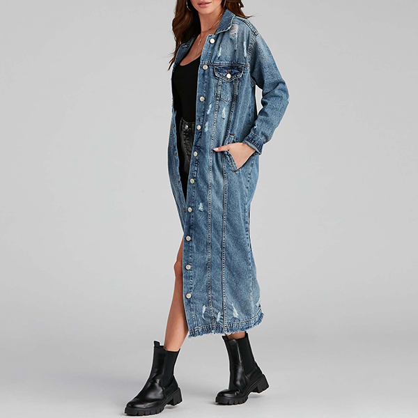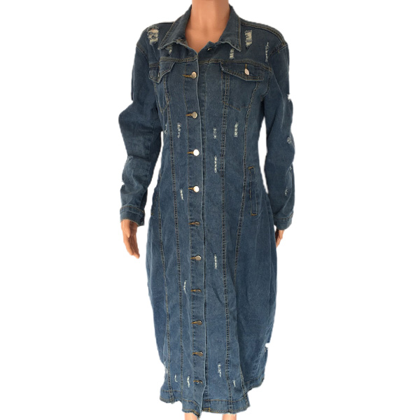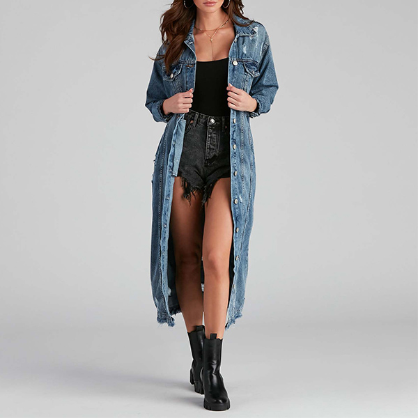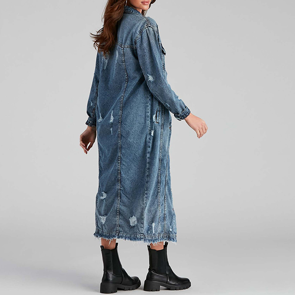 Ripped Long Sleeve Denim Windbreaker Jacket Cardigan Cloak