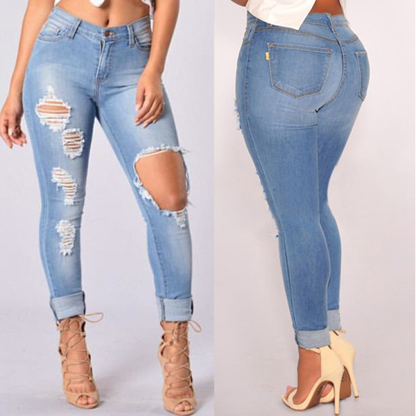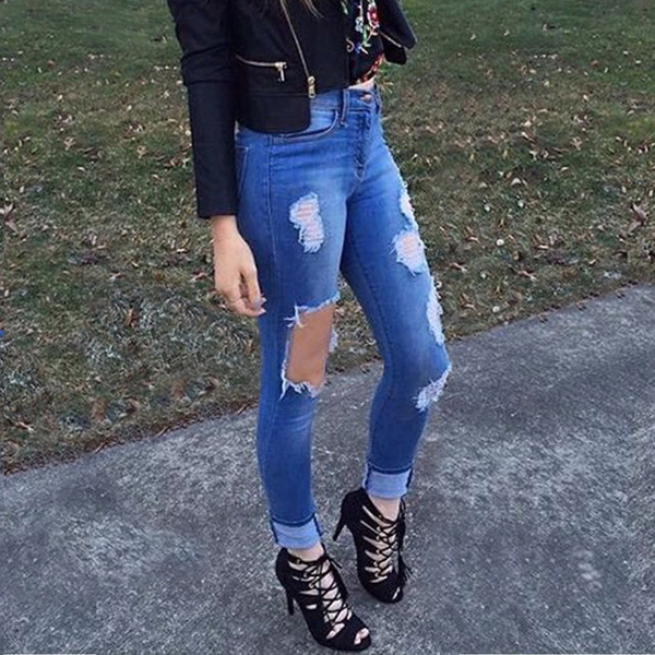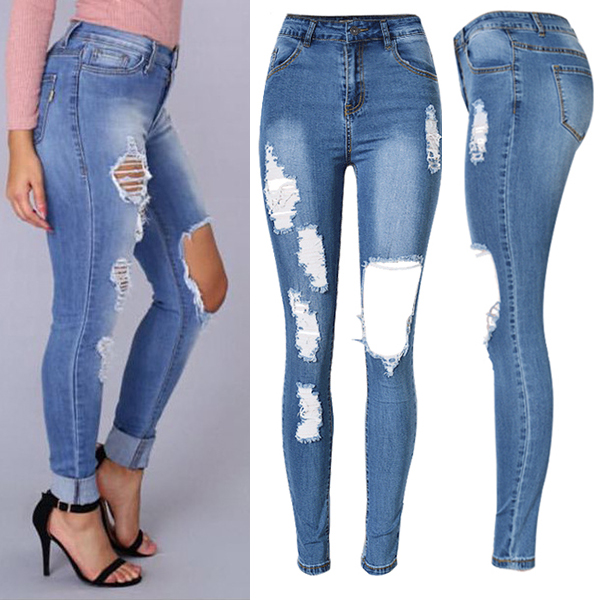 Street Fashion Heavy Distressed High-rise Skinny Denim Jeans