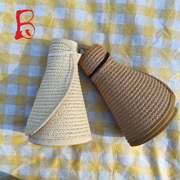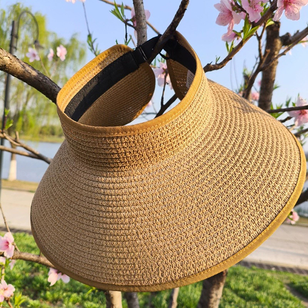 Roll-Up Wide Brim Straw Visor-Open Top Sun Hat for Ponytails & Buns