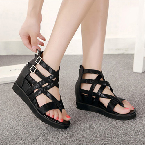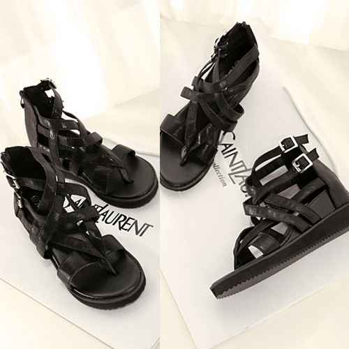 Let this sandals accompany you summer. Featuring crisscross strap with hollow out design and double buckle strap closure. Open toe style,perfect for match with your colorful nail polish.