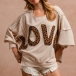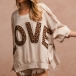This charming sweatshirt features playful leopard print with romantic letter-LOVE detailing and relaxed batwing sleeves for contemporary casual sophistication. Perfect for casual contemporary occasions, romantic styling, or comfortable playful wear.