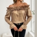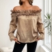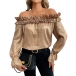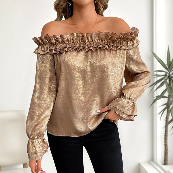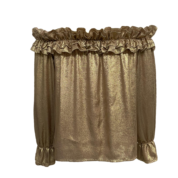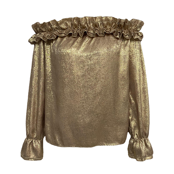Ruffled Long-Sleeved One-Shoulder Gold Shirt