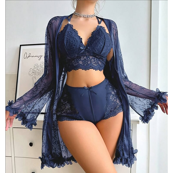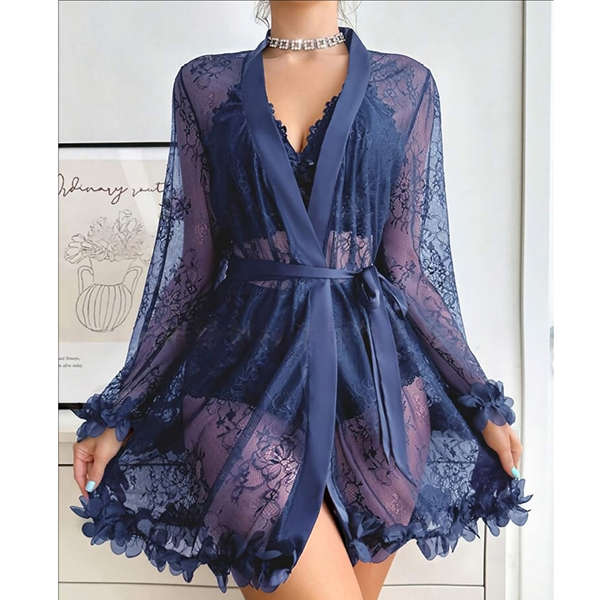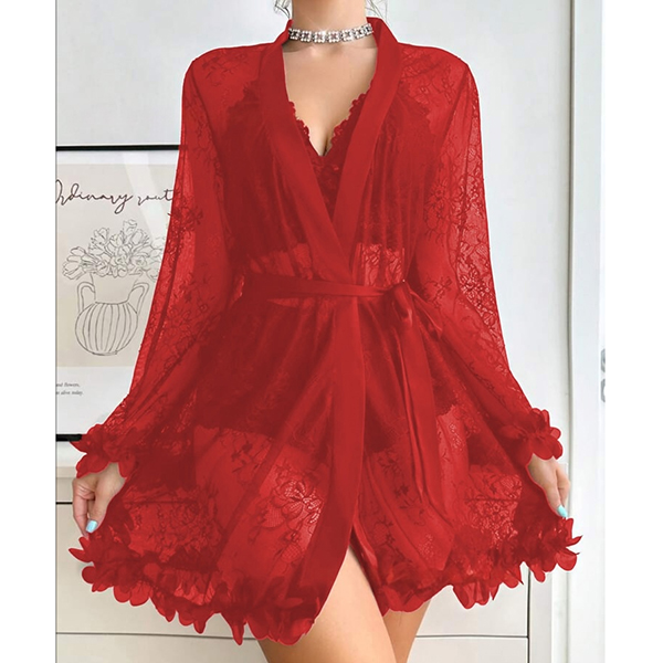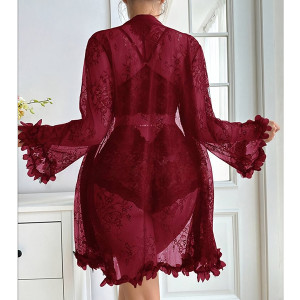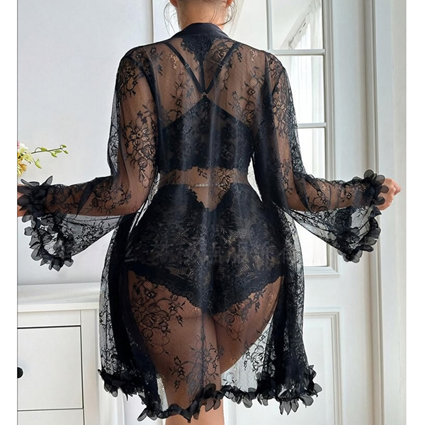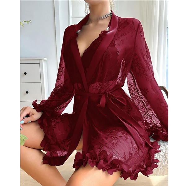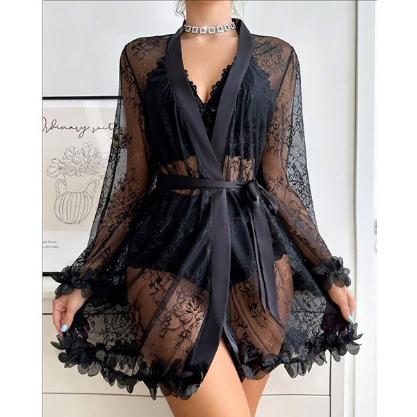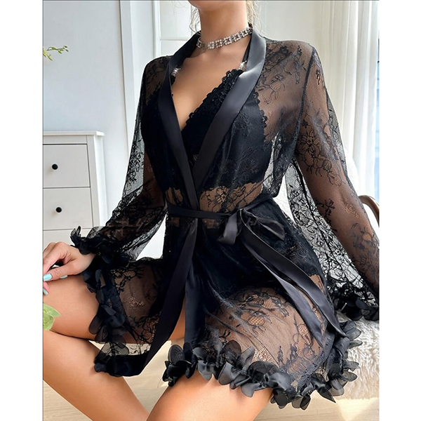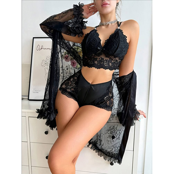 See-Through Lace Pajama Set featuring Hollow Mesh Design Lingerie