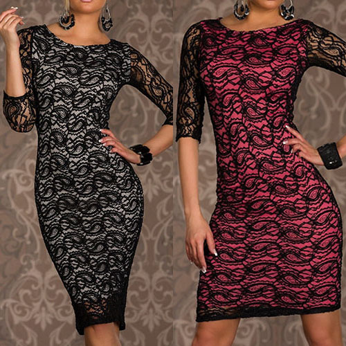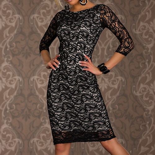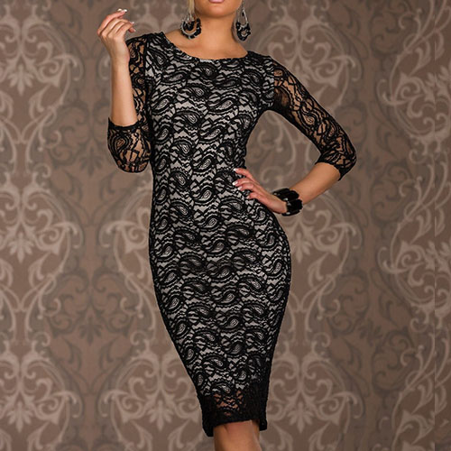 If you are a lace control,then how could you miss this lace dress? Outfitted with 3/4 sleeve,